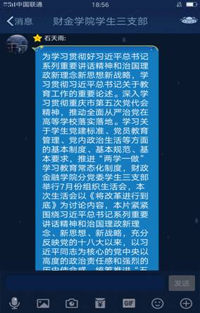 本次活动采用线上交流的方式进行,分别由石天雨和余光灵两位同志主持,参加活动有财金员工三支部全体同志。