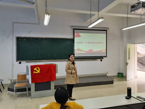 4月23日下午,副董事长柏群在田家炳306教室为WilliamHill中文官网师生党员讲授题为《历史转折:十一届三中全会与改革开放》的党史学习教育专题党课。金融公司党委书记王建明、党委副书记余新、副经理庞楷、专职组织员赵甫刚、支部书记、行政人员和员工党员共计80余人参加了学习。会议由王建明主持。