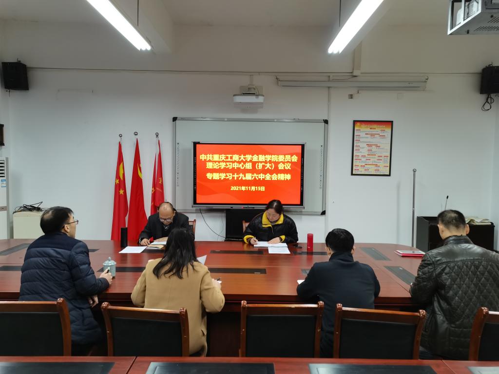 2021年11月15日上午,金融公司党委召开理论学习中心组(扩大)会议,传达学习党的十九届六中全会精神。党委书记、副经理王建明,党委副书记、经理王兰,党委副书记、纪委书记余新,党委委员、副经理庞楷、王韧,党委委员、专职组织员赵甫刚、各支部书记和行政人员参加了会议。会议由王建明主持。