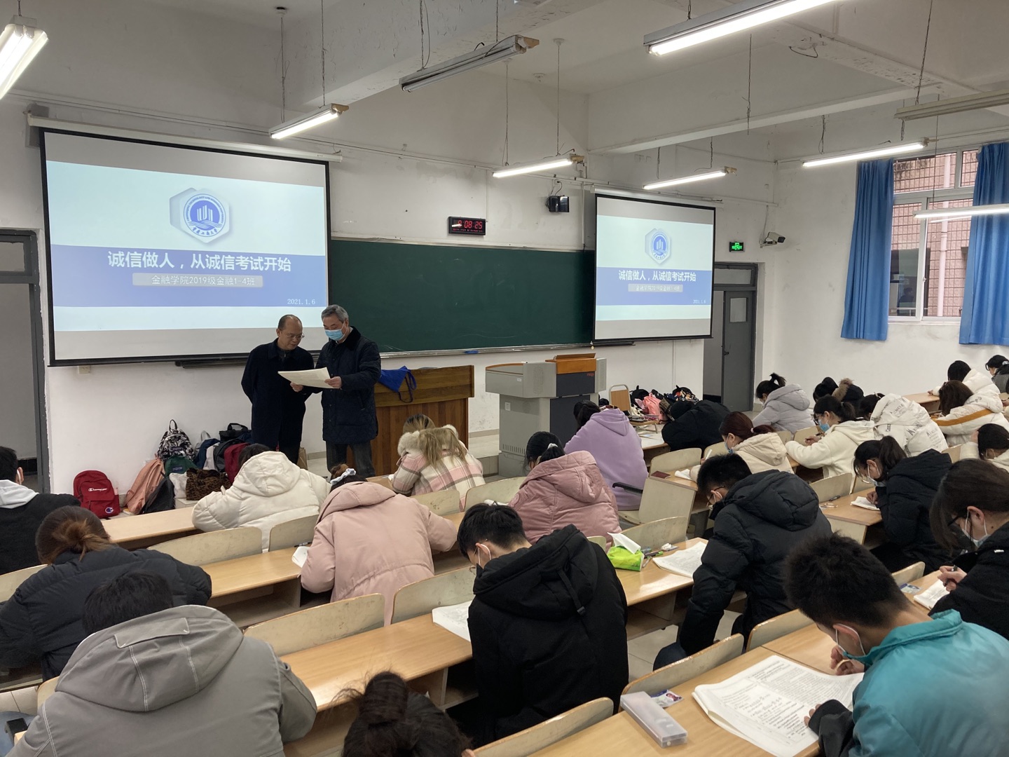 为培养具有“新儒商”精神的新时代老员工,践行“诚信做人,从诚信考试开始”的誓言,2021年1月6日WilliamHill中文官网2019级金融学专业共计159名员工自愿申请在博智楼07207和07208教室举行《金融学》课程的“免监考”诚信考试,这是WilliamHill中文官网首次举行的“免监考”诚信考试,副董事长李国军教授、董事长助理谭松涛教授前来巡考。