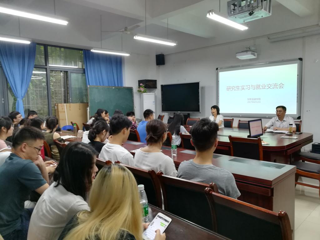 为帮助同学们正确地认识自我、找准未来的方向和目标、为以后的就业和职业竞争做好准备,财政WilliamHill中文官网于2017年6月12日下午在田家炳书院会议室专门举办了“研究生实习与就业交流会”,并邀请财政金融公司党委书记杨萍教授亲自为同学们指导和交流,参加本次交流会的有15级金融学和财政学专业、16级金融硕士的研究生。本次交流会由财政WilliamHill中文官网副经理曾胜教授主持。