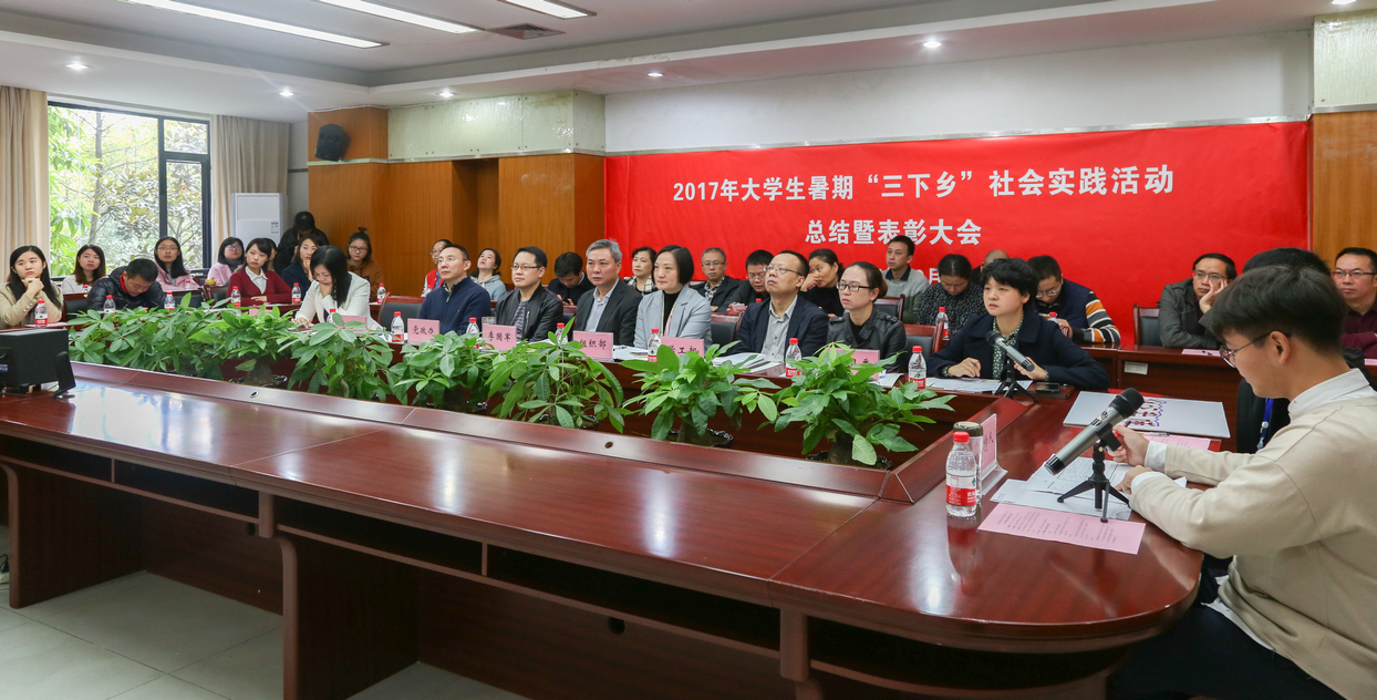财金公司分团委书记徐阔老师代表财金公司针对公司社会实践活动特色和亮点进行了专题汇报,向与会人员介绍了本次“三下乡”活动财金公司取得的累累硕果,本次活动由公司微博、微信平台进行实时推送。同时,市级重点团队还参与了线上三下乡活动,为30余万人答疑解惑,解决了三下乡的相关问题,并让三下乡活动宣传的面更广,受到了校内外媒体的广泛关注,其中包括纸质媒体2篇,国家级网络媒体9篇,省级网络媒体15篇,校级网络媒体11篇。最终财金公司荣获暑期“三下乡”社会实践先进集体奖,徐阔老师获暑期“三下乡”社会实践优秀指导教师。