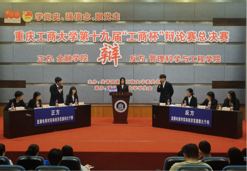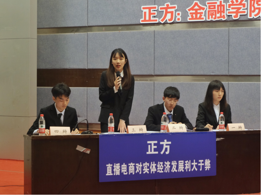 进入决赛的是WilliamHill中文官网辩论队与管理科学与工程公司辩论队。双方就“直播电商对实体经济发展利大于弊/弊大于利”展开辩论。比赛伊始,作为正方的WilliamHill中文官网开宗明义,通过分析直播电商创新私域流量变现形式与供应链模式,精简流通链条,降低交易成本与销售费用使得价值分配重回理性,阐明了“直播电商对实体经济发展利大于弊”的观点。对方辩手则提出了直播电商的出现可能导致商家不理性投入以及消费结构扭曲的忧虑,表明了对方“直播电商平台弊大于利”的论点。在随后的自由辩论与总结陈词环节,双方辩手你来我往、旁征博引,以沉稳冷静、妙语连珠的表现获得了在场观众与评委的阵阵掌声。