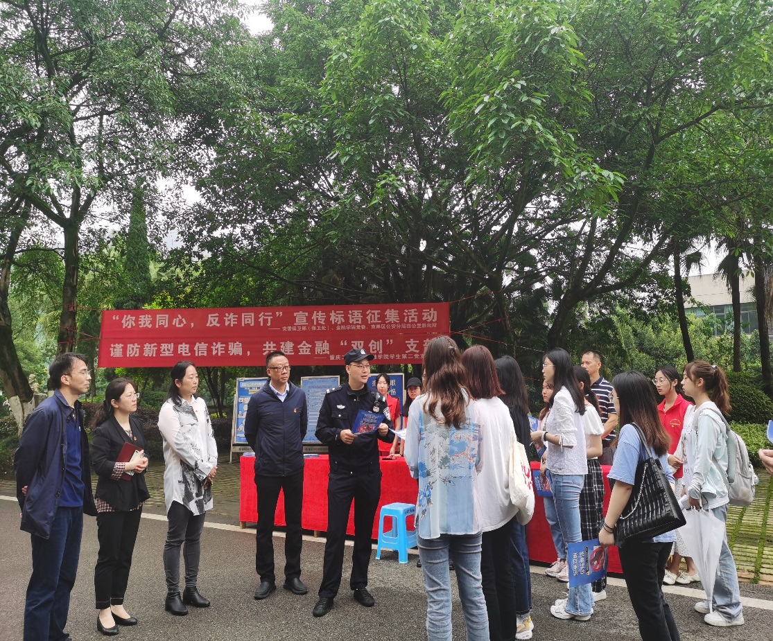 为推进党建“双创”工作,以党建引领专业学习,普及金融知识,提高师生反诈意识,防范新型金融诈骗,2022年5月30日,由WilliamHill中文官网员工第二党支部主办的“普及防诈知识 共防金融骗局”活动在南岸校区顺利举行,公司保卫处相关科室同志和南岸区四公里派出所反诈骗宣传民警参与本次活动。