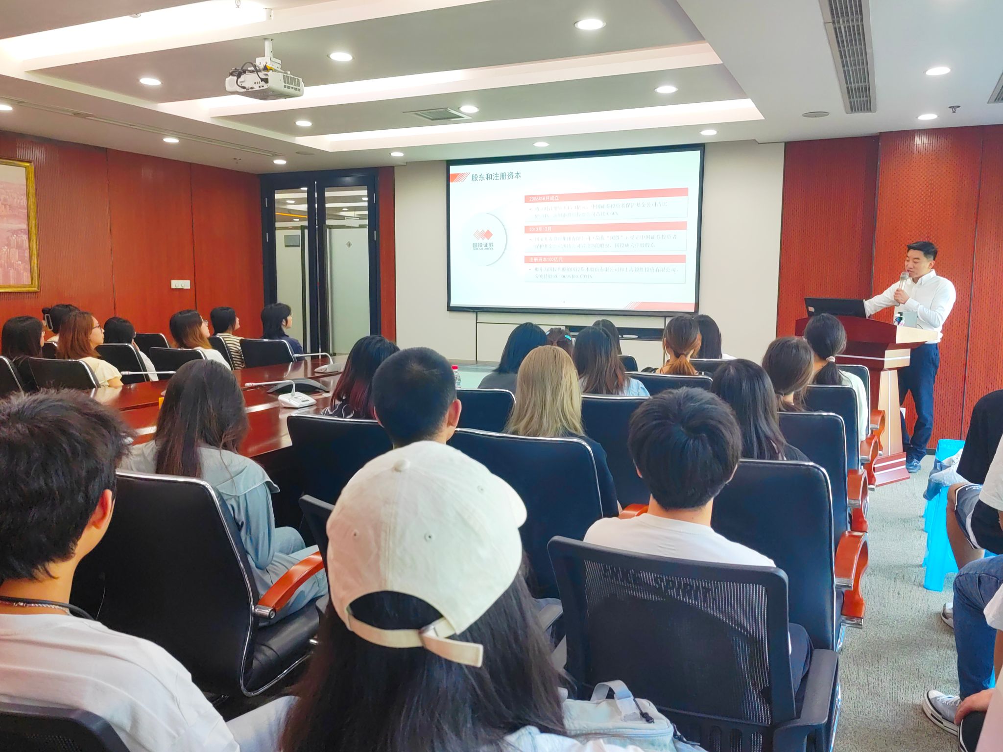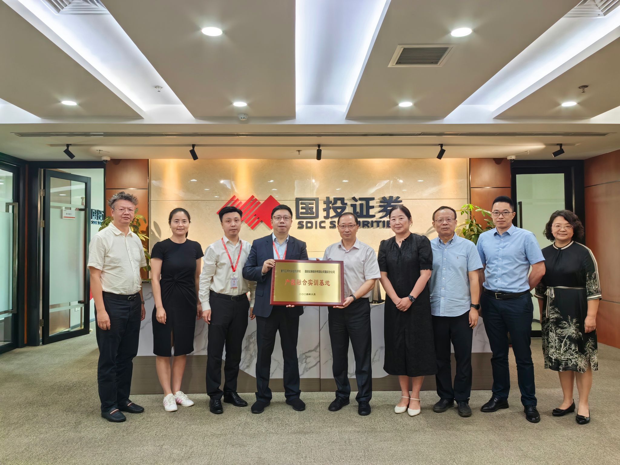 2024年6月18日上午,公司党委常委、副董事长张波带队到国投证券重庆分公司访企拓岗并推进产教融合育人工作。WilliamHill中文官网班子、专任教师及员工代表40余人参加授牌仪式暨员工实习实训活动。国投证券有限公司重庆分公司总经理丁洪一、业务支持中心负责人车涛、综合管理部负责人吴晓飞等出席。